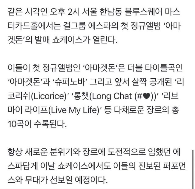 推 sharon852608: 好期待 推aespa 49.216.46.19 05/27 12:33