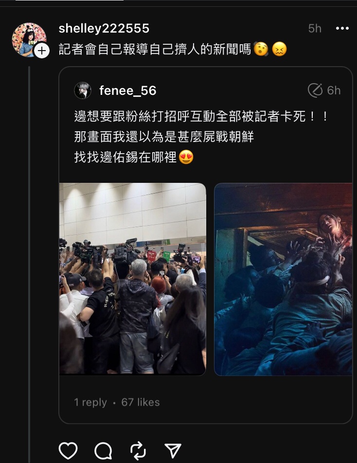 推 nacheong17: 粉絲都很有秩序 記者太誇張了223.137.165.117 06/06 15:28