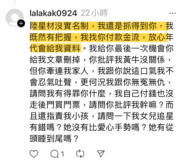 → green290043: 是能告啥 告粉絲說他黃牛嗎? 101.12.150.232 07/27 19:38