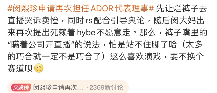 → ILNARA: hybe塑造反派 她自己才是受害者XD 203.204.70.54 09/13 13:54
