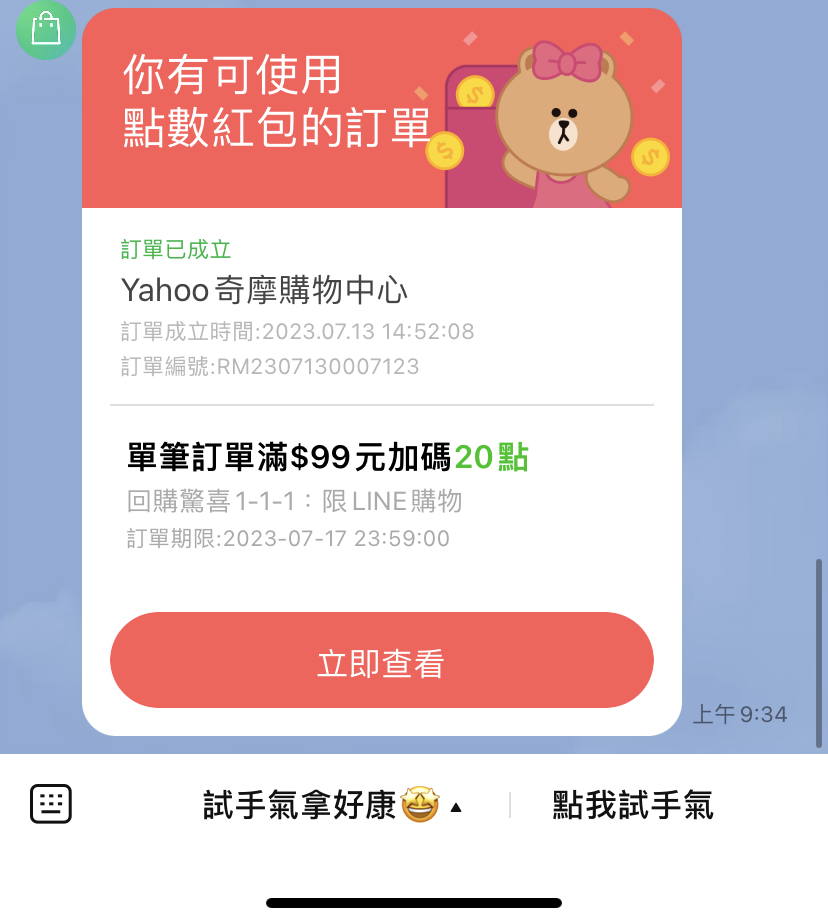 enouch777: 已經跳出訂單。可以用這紅包喔 101.137.20.216 07/14 09:46