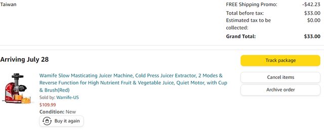 https://www.amazon.com/dp/B09X9ZZ9QM slow juicer 使用優惠碼 702JRYAC 價格33免運免稅 https://i.imgur.com/uRogeus.jpg