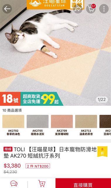 汪喵的TOLI地墊兩組200 不知道是價格設定錯誤嗎? 商品頁面寫了兩組200 https://shp.ee/jvxypja https://i.imgur.com/nkqX4kF.jpg