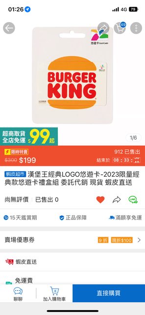 漢堡王悠遊卡199元(含四張50元現金抵用券) 憑卡到漢堡王門市買超省系列套餐 優惠價89元 https://i.imgur.com/ASJWhiF.jpg