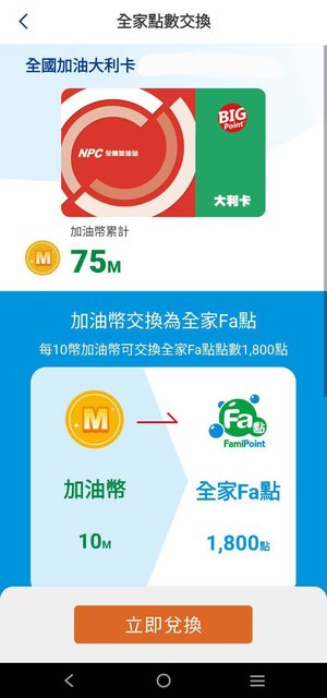 滑到全家app裡的banner才想到我也有全國app集它的加油幣 加油幣10幣可以換成全家1800點 https://i.imgur.com/sqAhBaO.jpg
