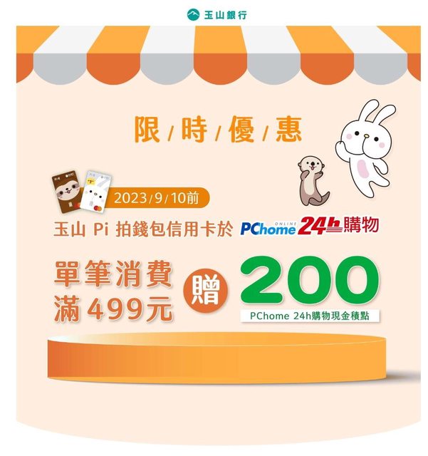 ◎符合活動資格者,將於2023年10月底前回饋200 PChome 24h購物現金積點至持卡人消費之