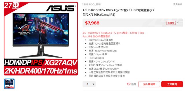 標題[情報] ROG Strix XG27AQV 降到8K內