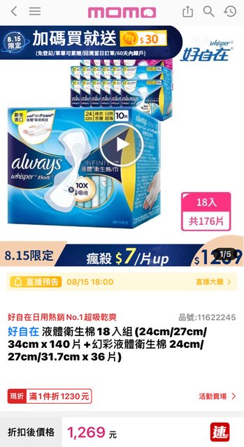 標題[情報] Momo 好自在液體衛生棉