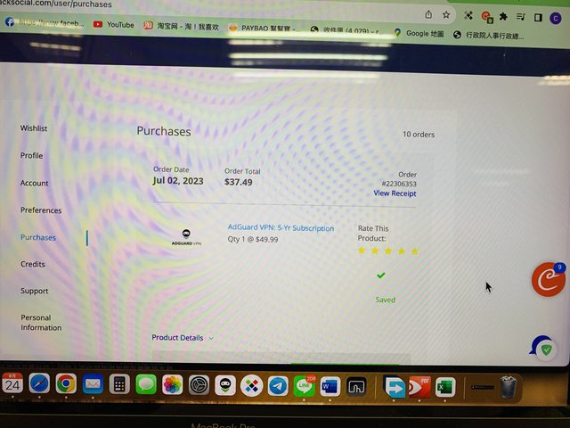 先上之前購買的證明