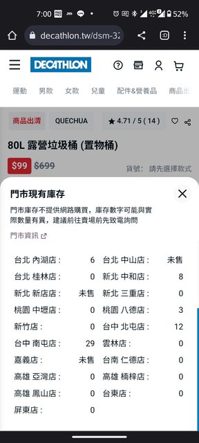 → lucian5566: 中和店線上顯示6 但現場沒貨了 49.216.90.36 09/03 20:33