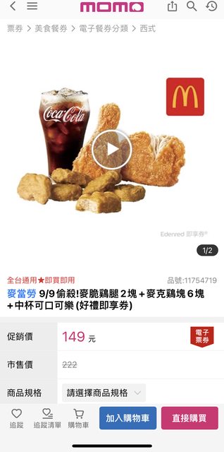 推 linx210145: 爛,蝦皮麥脆48元,麥克雞塊原本就1+1, 27.52.130.112 09/09 00:45