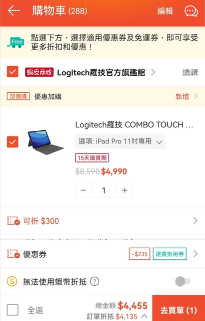 再加上全站的600-30的券(跟其他店商品一起結帳)