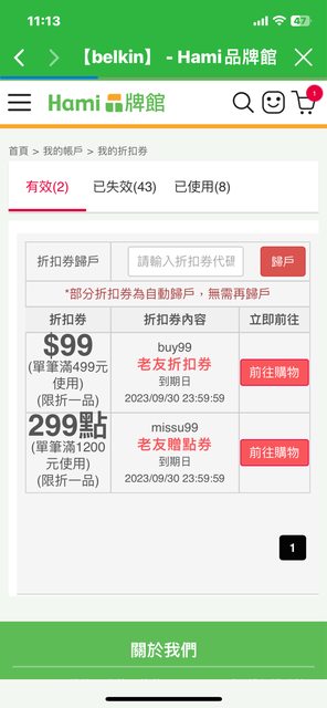 標題[情報]hami 品牌優惠券(499折99)