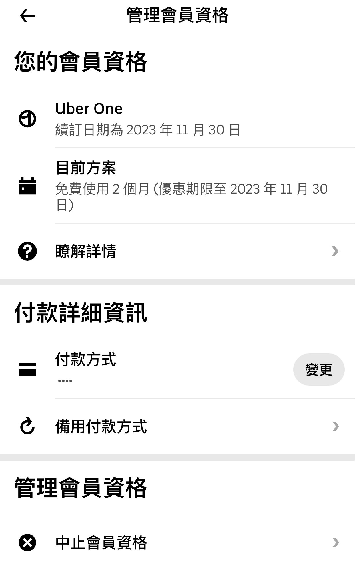 推 chenmingchih: 到期日前一天uber one的手動取消續 27.51.1.254 10/01 09:15
