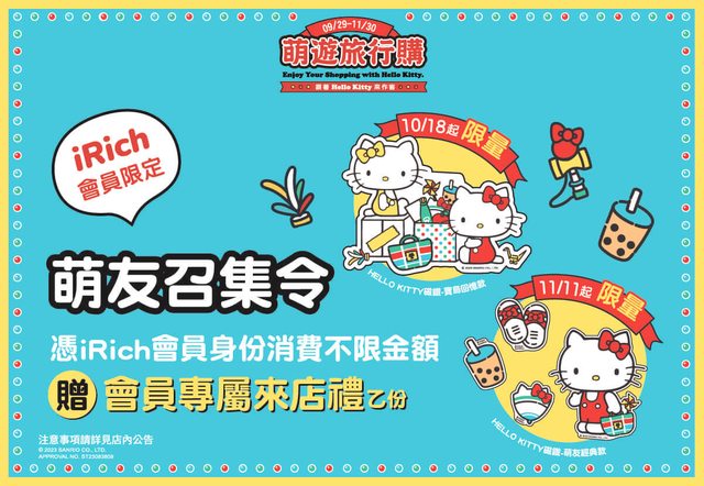 11/09抽 雙人同行 日本東京來回機票+三麗鷗彩虹樂園門票(1名)