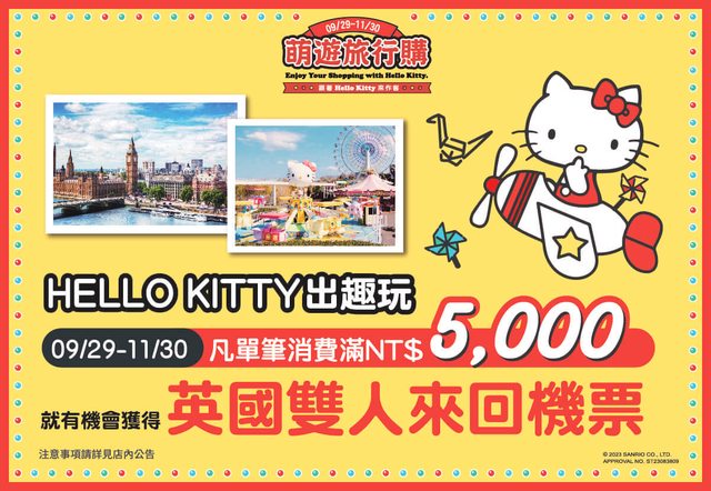 10/19抽 雙人同行 日本九州來回機票+三麗鷗和諧樂園門票(1名)
