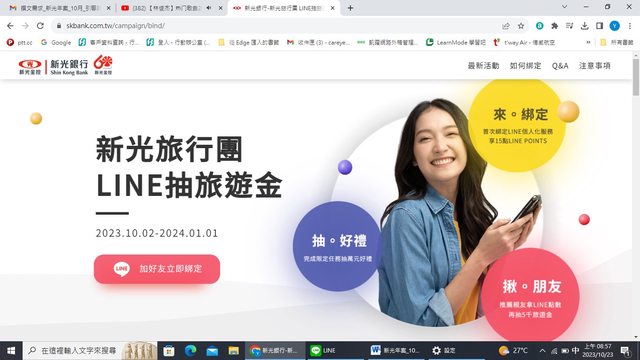 標題[情報] 新光銀行line官方帳號活動