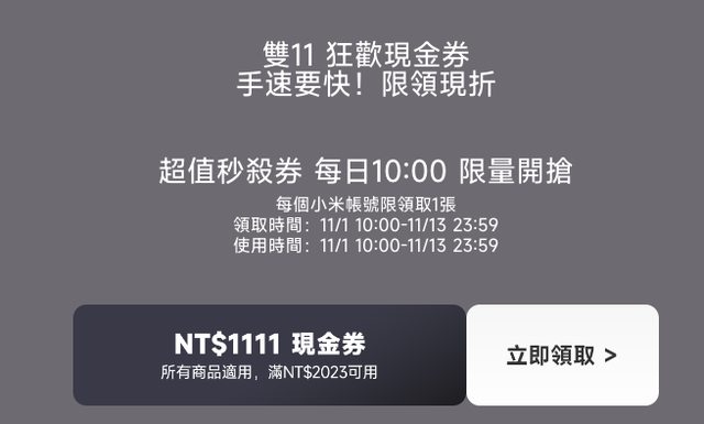 推 kijh: 原來小米雙11已經開跑了喔,現在簽到五天還101.10.60.160 10/31 20:15
