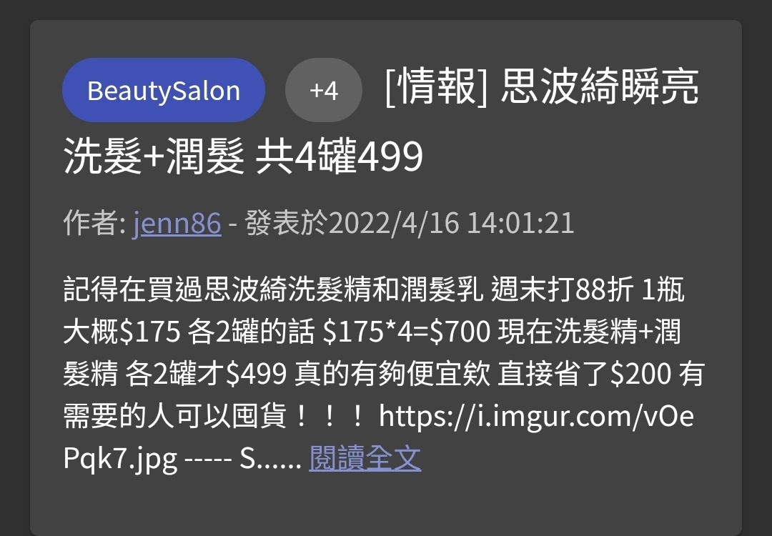 【思波綺】升級版 瞬亮洗潤髮 4入組
