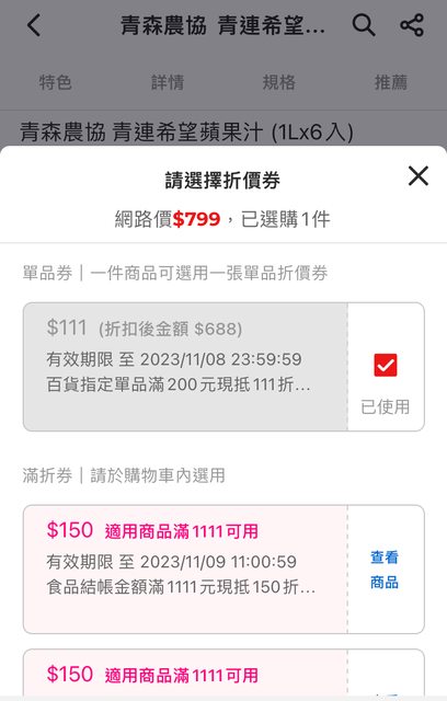 推 a28200266: 111是領完了嗎?折價券那邊看得到 用 36.224.224.105 11/08 00:33
