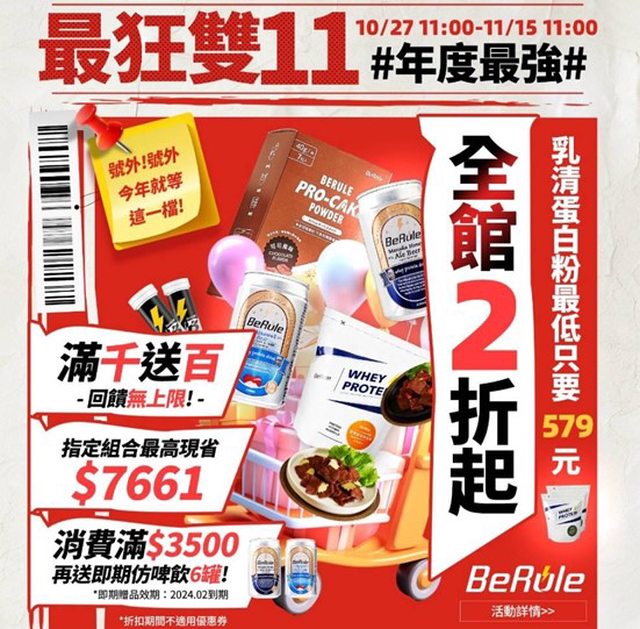 1.滿千折百(滿1000送100購物金 以此類推、無上限)
