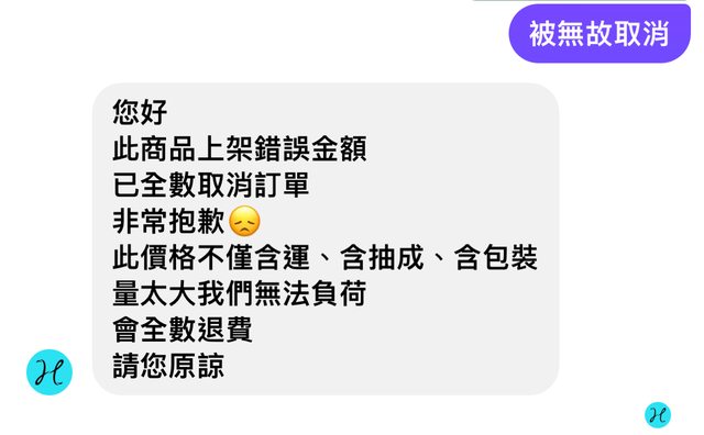 推 scent15: 取消訂單好像殺人父母耶,一堆超氣的啦 101.9.175.90 11/11 17:54