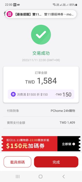 blackoctopus: 街口顯示交易成功但PCHOME顯示付款 111.71.85.133 11/11 22:15