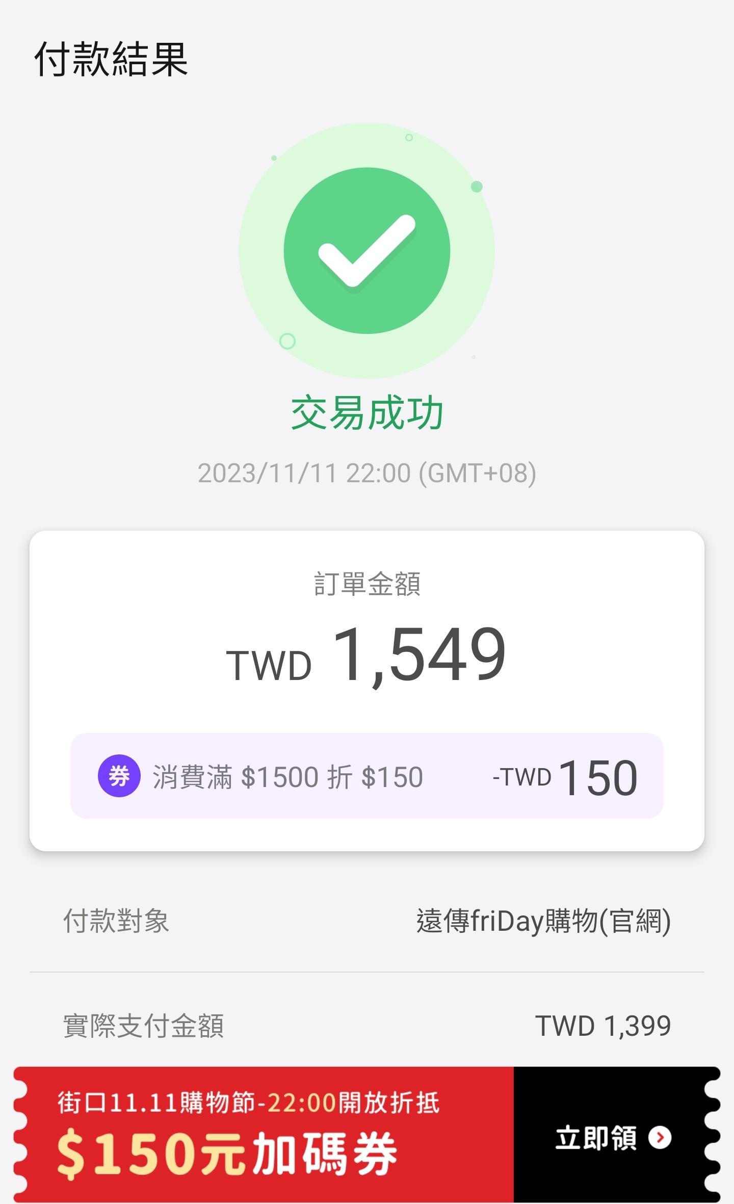 newlife5566: 1500折150是22:00才開始 42.75.33.109 11/11 20:20