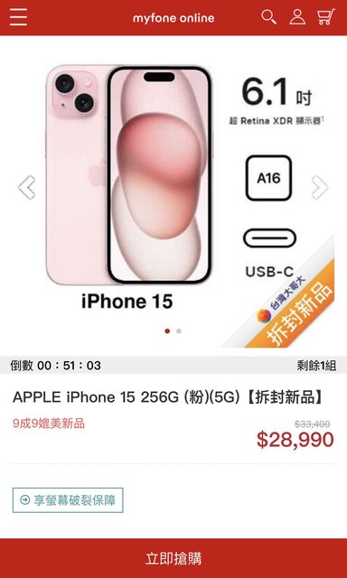 標題[情報] iPhone 15 256G 粉 $28,990