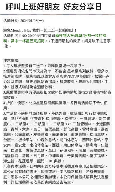推 culoobalus: 沒星冰樂的星巴克優惠,趨近於不存 101.12.51.89 01/08 12:51