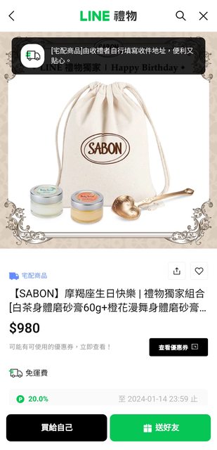 標題[情報] sabon line購物回饋20%LP