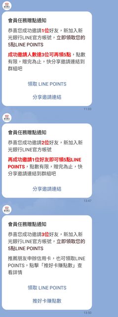 你(推薦人)本身要先綁定新光銀行LINE個人化服務,然後再分享邀請連結給1個未曾加入新