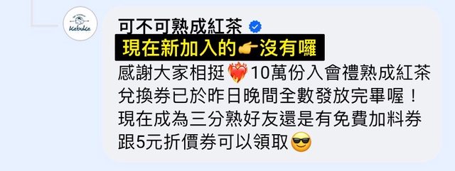 推 nelson7061: 中午去換熟成紅茶還有 111.255.6.229 01/20 18:56