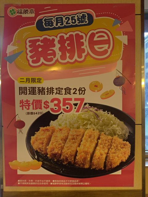 1/29 更新:11:16 已確認 開運豬排定食的每份價格漲為 $210 (1/28 仍為 $195)