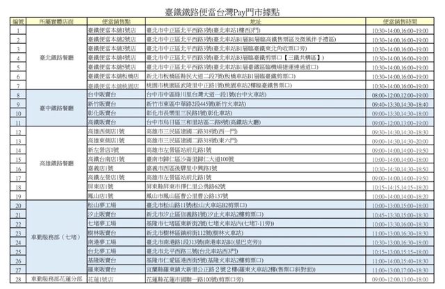 推 dufymoon: 全台台灣pay台鐵門市表格資訊很實用 大 49.216.23.226 02/04 21:38