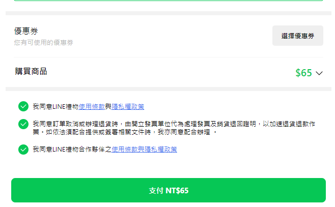 推 a606155123: 應該結帳時候選linepay 1.200.154.133 02/08 13:39