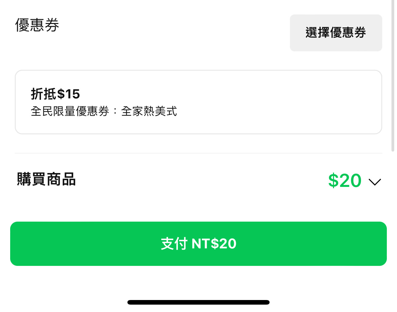 Line禮物限量優惠券 https://giftshop-tw.line.me/coupons 領券即可用20元購買原價35元的全家中杯熱美式 -- ※ 發信站: 批踢踢實業坊(pttsite.org.tw), 來自: 223.137.237.13 (臺灣) ※ 文章網址: https://pttsite.org.tw/Lifeismoney/M.1707973233.A.FBF