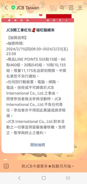 如題 加JCB 好友line有1點 https://i.imgur.com/f3ljRrU.jpg