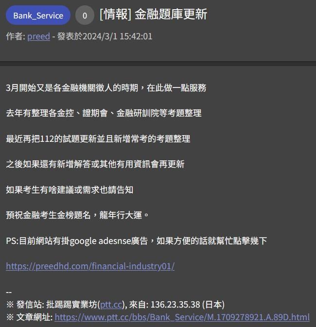 這個教育網站有大量題庫整理,升學考試(從國中到研究所),公職考試,國營考試,金融 業考試,教師甄試等都有整理,在雲端硬碟下載及網站也有提供一些免費解答 希望能讓準備考試的考生省下時間和金錢 https://preedhd.com/ -- ※ 發信站: 批踢踢實業坊(pttsite.org.tw), 來自: 61.71.161.58 (臺灣) ※ 文章網址: https://pttsite.org.tw/Lifeismoney/M.1709518139.A.56A