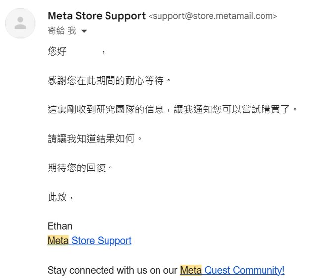 當天晚上:我收到Meta的信件 https://i.imgur.com/oPFcdlV.png