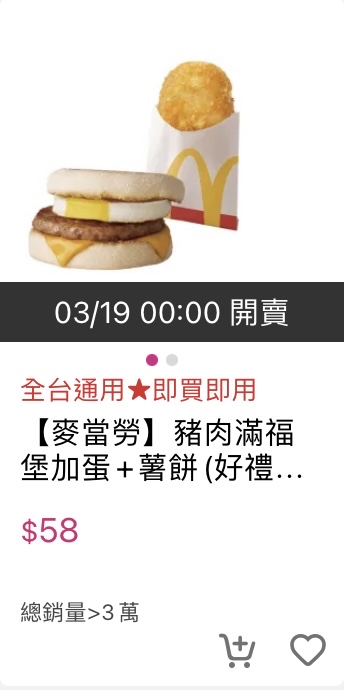 補貨啦,不過一樣一帳號限一組 有需要可以參考看看 【麥當勞】豬肉滿福堡加蛋+薯餅(好禮即享券)【58元】 https://momo.dm/YU3yBR ----- Sent from JPTT on my Samsung SM-S9280. -- ※ 發信站: 批踢踢實業坊(pttsite.org.tw), 來自: 125.228.215.1 (臺灣) ※ 文章網址: https://pttsite.org.tw/Lifeismoney/M.1709946869.A.4EC