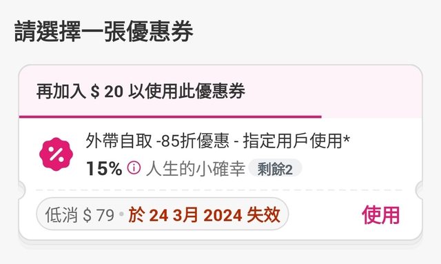 推 gnsheila: 滿79 85折券,剛剛用了一次自動消失,沒 49.217.134.65 03/21 12:55