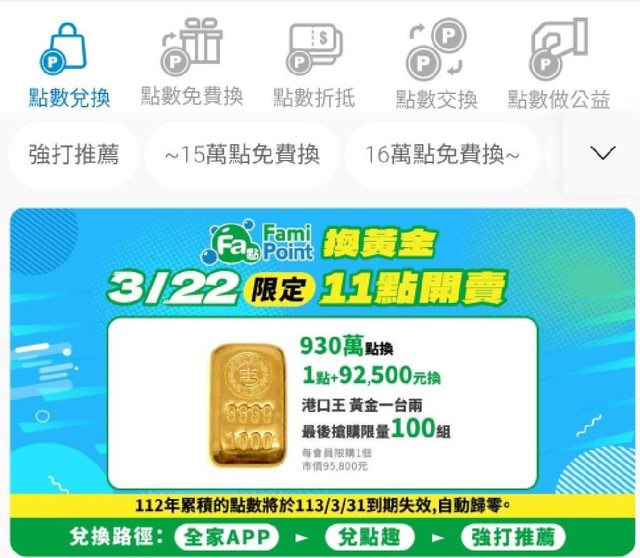100組 全家app 930萬全家點數兌換 全家和hamipoint 暴力升值中 在酷碰版 全家點數來到1:125-140 Hami來到 1:1.3-1.4 -- ※ 發信站: 批踢踢實業坊(pttsite.org.tw), 來自: 37.128.253.129 (臺灣) ※ 文章網址: https://pttsite.org.tw/Lifeismoney/M.1711016014.A.028