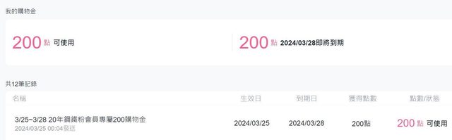 3/25~3/28 20年鋼鐵粉會員專屬200購物金 https://i.imgur.com/cVv27kX.jpeg
