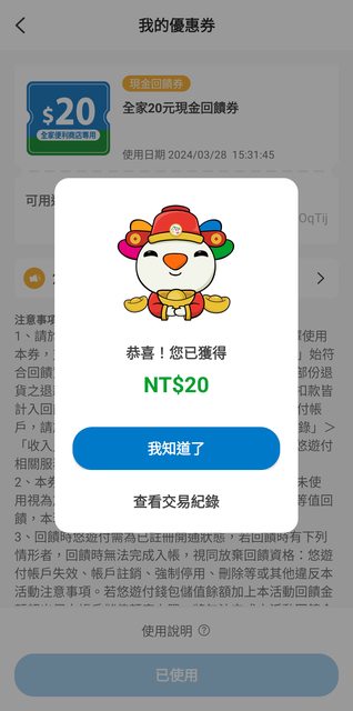 標題[情報] 悠遊付x全家20元現金回饋券 分眾