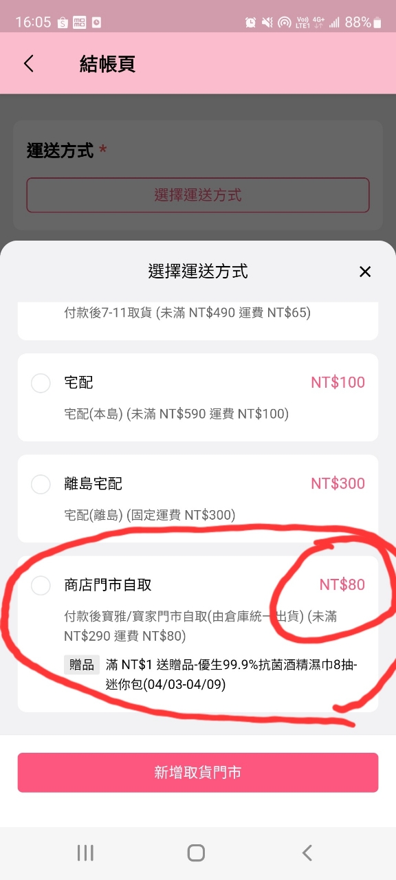 → amber0306: 商店門市取貨,要80運費。 49.217.195.149 04/05 16:06