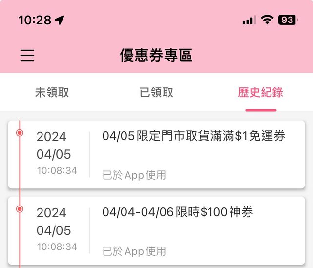 → weitn29: 一開始在優惠券的「未領取」沒看到,後123.192.204.182 04/05 12:26