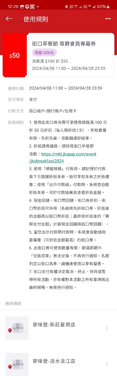 推 vickyshan: 單筆上限5元,每人限4筆,最多才折20, 122.254.21.160 04/08 12:46