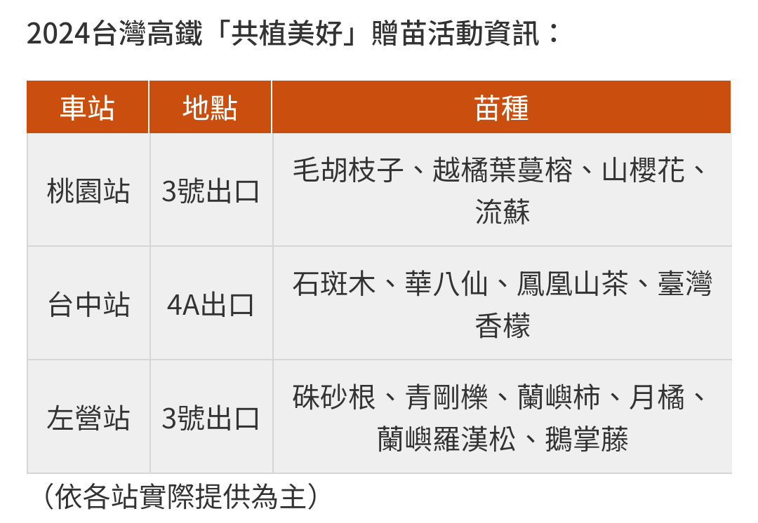 標題[新聞] 高鐵台中站「世界地球日」限量樹苗免費送