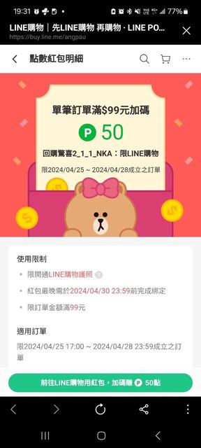 推 oz: 請問line點數折抵剩零頭也算符合99嗎 118.160.51.60 04/25 22:37
